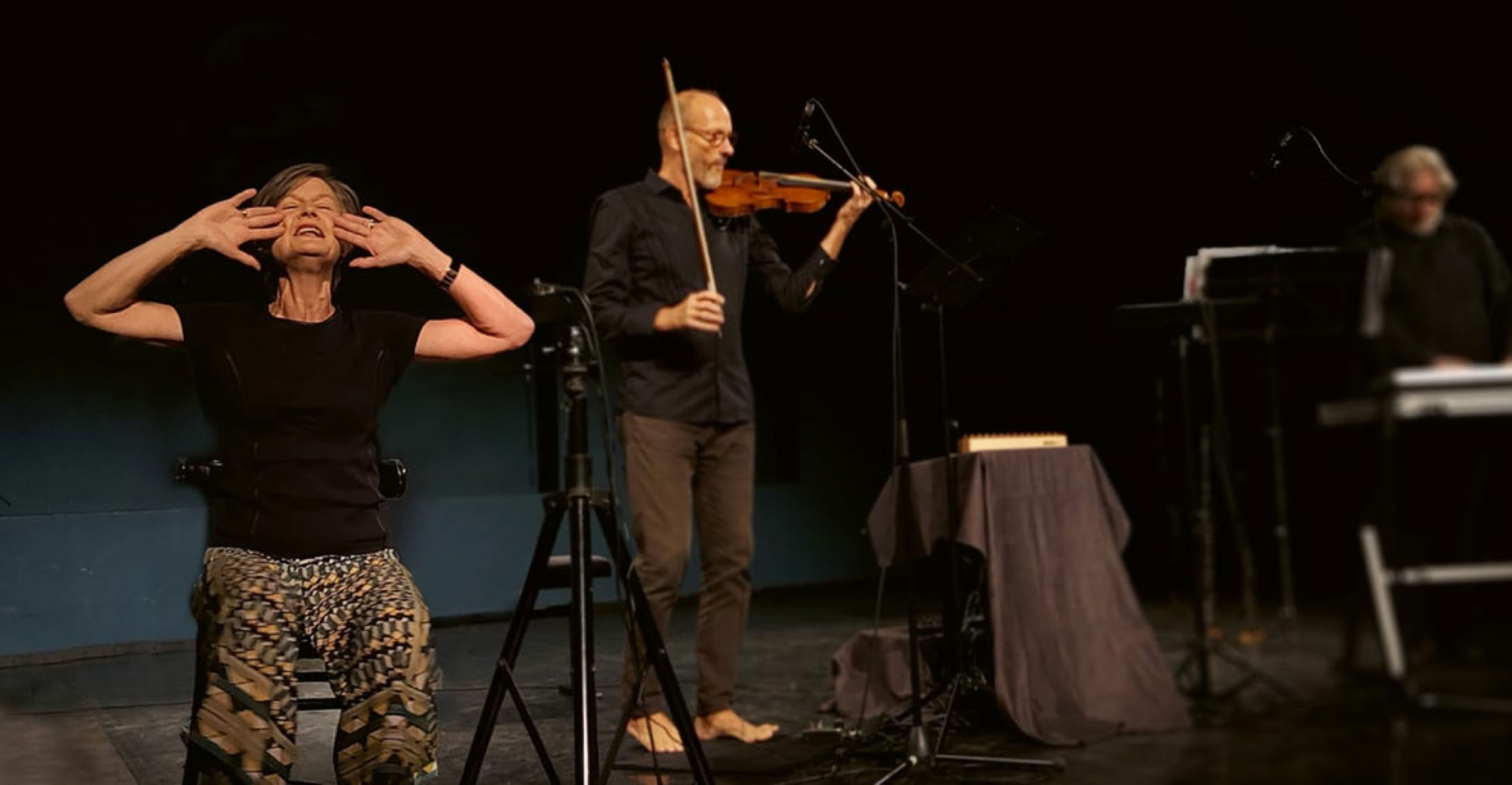 Bräute des Windes - Frauen im Surrealismus“ ist eine Klangperformance mit eigenen Kompositionen und Improvisationen über Texte der Surrealistinnen Leonora Carrington, Mina Loy, Meret Oppenheim und Alejandra Pizarniak. Die kreative Kraft der Texte dieser starken Frauen, die im Schatten der Männer jener Zeit standen, inspirierten Albrecht Maurer und Norbert Rodenkirchen zu eigenen Kompositionen. Durch den dezenten Einsatz von Loopern erweitern sie das poetische Spektrum ihres kammermusikalischen Spiels. Durch Bettina Marugg werden Texte und Zeit wieder lebendig. Sie spricht, spielt und singt und zeigt die Stärke der Frauen im Surrealismus.